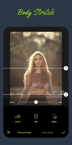 The shape and texture of your waist or arm are easily reshaped with the AI Body Editor Tool.